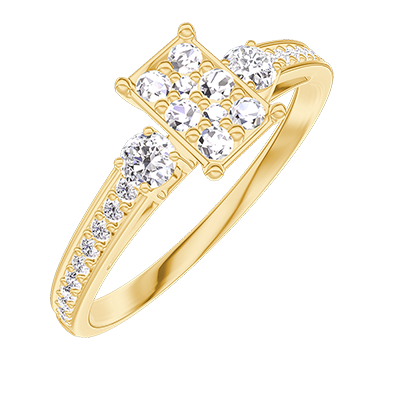 « L'ATELIER » NR. 209825Ring Geelgoud 18 karaat - Cluster van natuurlijke diamantent Rechthoekig gelijkwaardig 0.5 - Aanleunende edelstenen Diamant - Setting Diamant