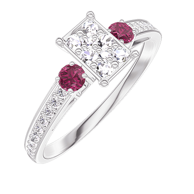 « L'ATELIER » Nº209847Ring Witgoud 18 karaat - Cluster van natuurlijke diamantent Rechthoekig gelijkwaardig 0.5 - Aanleunende edelstenen Robijn - Setting Diamant