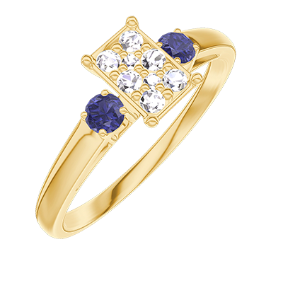« L'ATELIER » Nº209862Ring Geelgoud 9 karaat - Cluster van natuurlijke diamantent Rechthoekig gelijkwaardig 0.5 - Aanleunende edelstenen Blauwe saffier