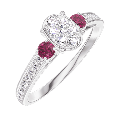 « L'ATELIER » Nº209947Ring Witgoud 18 karaat - Cluster van natuurlijke diamantent Ovaal gelijkwaardig 0.5 - Aanleunende edelstenen Robijn - Setting Diamant