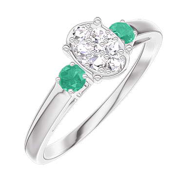 « L'ATELIER » NR. 209983Ring Witgoud 18 karaat - Cluster van natuurlijke diamantent Ovaal gelijkwaardig 0.5 - Aanleunende edelstenen Smaragd