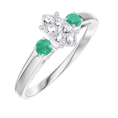 « L'ATELIER » Nº210183Ring Witgoud 18 karaat - Cluster van natuurlijke diamantent Markies gelijkwaardig 0.5 - Aanleunende edelstenen Smaragd