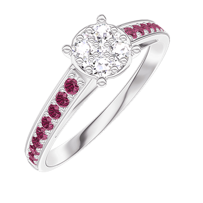 « L'ATELIER » NR. 210211Ring Witgoud 18 karaat - Cluster van natuurlijke diamantent rond gelijkwaardig 0.7 - Setting Robijn 4.9