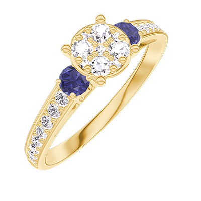 « L'ATELIER » NR. 210266Ring Geelgoud 9 karaat - Cluster van natuurlijke diamantent rond gelijkwaardig 0.7 - Aanleunende edelstenen Blauwe saffier - Setting Diamant 4.9