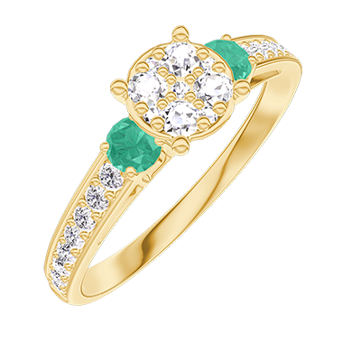 « L'ATELIER » NR. 210286Ring Geelgoud 9 karaat - Cluster van natuurlijke diamantent rond gelijkwaardig 0.7 - Aanleunende edelstenen Smaragd - Setting Diamant 4.9 (7)