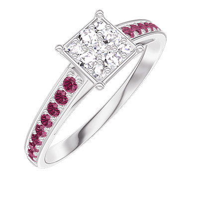 « L'ATELIER » NR. 210311Ring Witgoud 18 karaat - Cluster van natuurlijke diamantent Prinses gelijkwaardig 0.7 - Setting Robijn