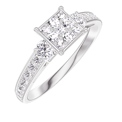 « L'ATELIER » NR. 210328Ring Witgoud 9 karaat - Cluster van natuurlijke diamantent Prinses gelijkwaardig 0.7 - Aanleunende edelstenen Diamant - Setting Diamant