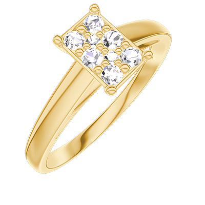 « L'ATELIER » Nº210401Ring Geelgoud 18 karaat - Cluster van natuurlijke diamantent Rechthoekig gelijkwaardig 0.7