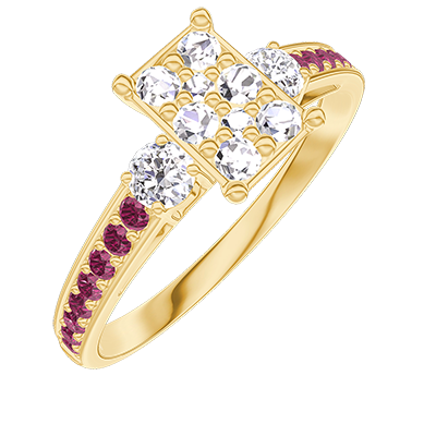 « L'ATELIER » Nº210430Ring Geelgoud 9 karaat - Cluster van natuurlijke diamantent Rechthoekig gelijkwaardig 0.7 - Aanleunende edelstenen Diamant - Setting Robijn