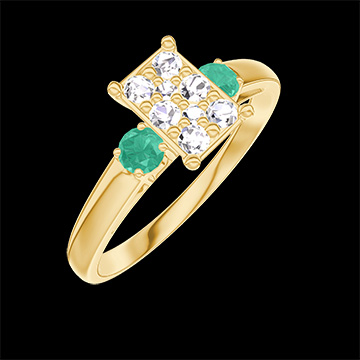 « L'ATELIER » Nº210482Ring Geelgoud 9 karaat - Cluster van natuurlijke diamantent Rechthoekig gelijkwaardig 0.7 - Aanleunende edelstenen Smaragd
