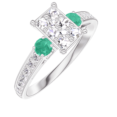 « L'ATELIER » Nº210487Ring Witgoud 18 karaat - Cluster van natuurlijke diamantent Rechthoekig gelijkwaardig 0.7 - Aanleunende edelstenen Smaragd - Setting Diamant
