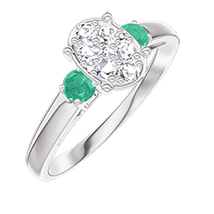 Ring Witgoud 18 karaat - Cluster van natuurlijke diamantent Ovaal gelijkwaardig 0.7 - Aanleunende edelstenen Smaragd