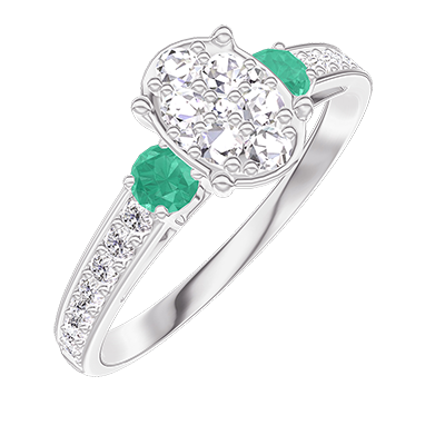 « L'ATELIER » Nº210587Ring Witgoud 18 karaat - Cluster van natuurlijke diamantent Ovaal gelijkwaardig 0.7 - Aanleunende edelstenen Smaragd - Setting Diamant