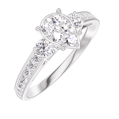 « L'ATELIER » NR. 210627Ring Witgoud 18 karaat - Cluster van natuurlijke diamantent Peer gelijkwaardig 0.7 - Aanleunende edelstenen Diamant - Setting Diamant