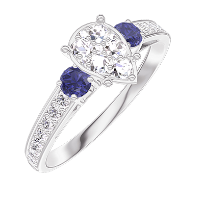 « L'ATELIER » Nº210667Ring Witgoud 18 karaat - Cluster van natuurlijke diamantent Peer gelijkwaardig 0.7 - Aanleunende edelstenen Blauwe saffier - Setting Diamant