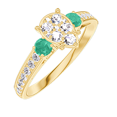 Ring Geelgoud 18 karaat - Cluster van natuurlijke diamantent Peer gelijkwaardig 0.7 - Aanleunende edelstenen Smaragd - Setting Diamant