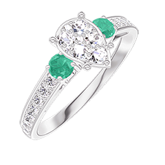 Ring Witgoud 18 karaat - Cluster van natuurlijke diamantent Peer gelijkwaardig 0.7 - Aanleunende edelstenen Smaragd - Setting Diamant