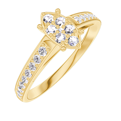 « L'ATELIER » NR. 210706Ring Geelgoud 9 karaat - Cluster van natuurlijke diamantent Markies gelijkwaardig 0.7 - Setting Diamant