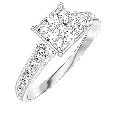 « L'ATELIER » NR. 210928Ring Witgoud 9 karaat - Cluster van natuurlijke diamantent Prinses gelijkwaardig 1 - Aanleunende edelstenen Diamant - Setting Diamant