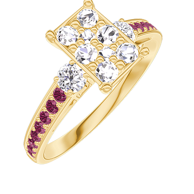 « L'ATELIER » Nº211029Ring Geelgoud 18 karaat - Cluster van natuurlijke diamantent Rechthoekig gelijkwaardig 1 - Aanleunende edelstenen Diamant - Setting Robijn 4.6 (5)