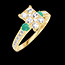 22 diamanten : 0.36 karaat - Geel goud (18 karaat = 750/-): 3.1 g.