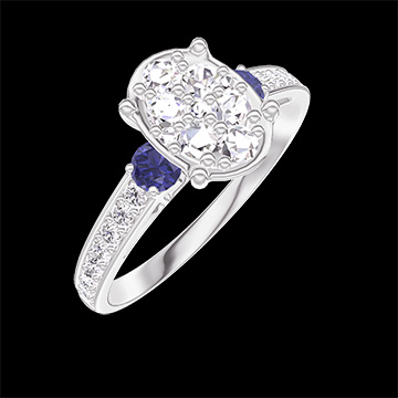 « L'ATELIER » Nº211167Ring Witgoud 18 karaat - Cluster van natuurlijke diamantent Ovaal gelijkwaardig 1 - Aanleunende edelstenen Blauwe saffier - Setting Diamant 4.7