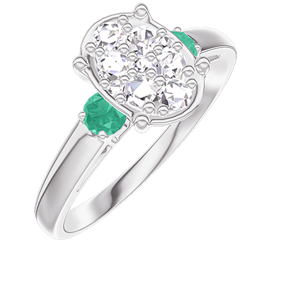 « L'ATELIER » NR. 211184Ring Witgoud 9 karaat - Cluster van natuurlijke diamantent Ovaal gelijkwaardig 1 - Aanleunende edelstenen Smaragd 4.7