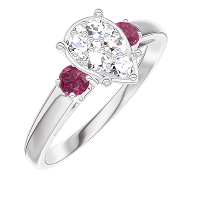 « L'ATELIER » Nº211243Ring Witgoud 18 karaat - Cluster van natuurlijke diamantent Peer gelijkwaardig 1 - Aanleunende edelstenen Robijn
