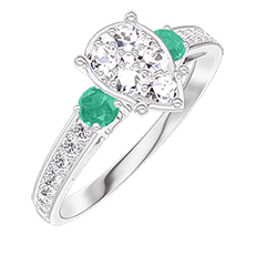 « L'ATELIER » NR. 211287Ring Witgoud 18 karaat - Cluster van natuurlijke diamantent Peer gelijkwaardig 1 - Aanleunende edelstenen Smaragd - Setting Diamant