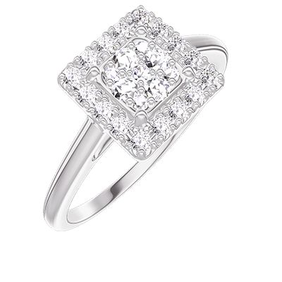 « L'ATELIER » NR. 211451Ring Witgoud 18 karaat - Cluster van natuurlijke diamantent Prinses gelijkwaardig 0.5 - Halo Diamant 4.1