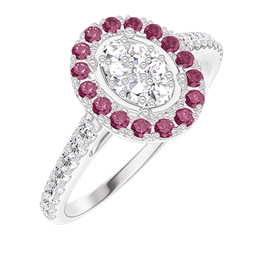 « L'ATELIER » Nº211568Ring Witgoud 9 karaat - Cluster van natuurlijke diamantent Ovaal gelijkwaardig 0.5 - Halo Robijn - Setting Diamant 4.5