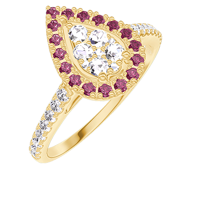 « L'ATELIER » NR. 211614Ring Geelgoud 9 karaat - Cluster van natuurlijke diamantent Peer gelijkwaardig 0.5 - Halo Robijn - Setting Diamant 4.8 (13)