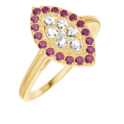 « L'ATELIER » Nº211657Ring Geelgoud 18 karaat - Cluster van natuurlijke diamantent Markies gelijkwaardig 0.5 - Halo Robijn