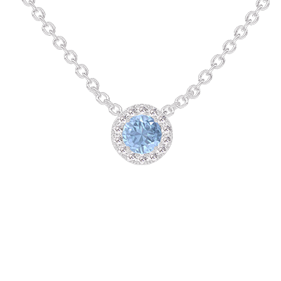 « L'ATELIER » Nº213724Halsketting Witgoud 9 karaat - Blauwe topaas rond 0.3 Karaat - Halo Diamant - Ketting Gourmet