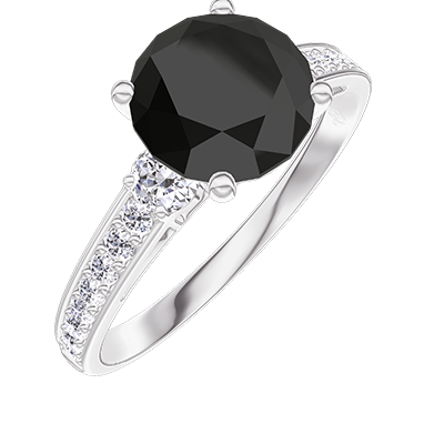 « L'ATELIER » NR. 222948Ring Witgoud 9 karaat - Zwarte diamant rond 1 Karaat - Aanleunende edelstenen Diamant - Setting Diamant 4.8