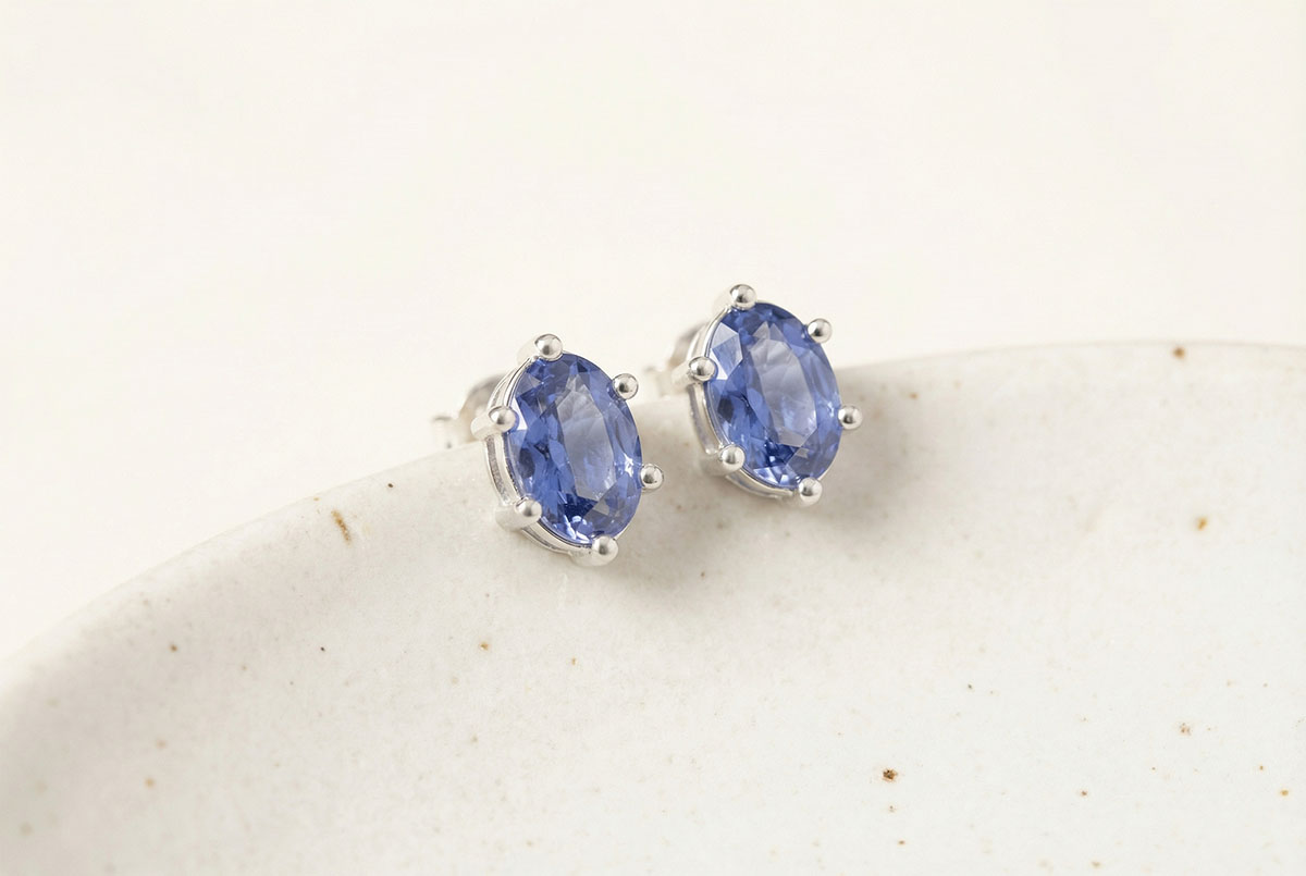 « L'ATELIER » NR. 403542Oorbellen Witgoud 9 karaat - Blauwe saffier Ovaal 0.3 Karaat (2 X)