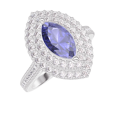 « L'ATELIER » NR. 405551Ring Witgoud 9 karaat - Blauwe saffier Markies 0.5 Karaat - Halo Diamant - Setting Diamant