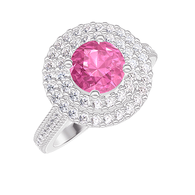 « L'ATELIER » NR. 415845Ring Witgoud 18 karaat - Rosé saffier rond 0.5 Karaat - Halo Diamant - Setting Diamant