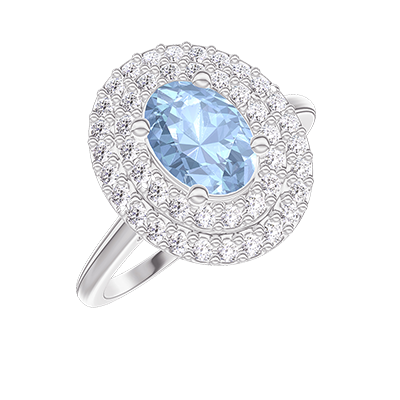 « L'ATELIER » NR. 418850Ring Witgoud 9 karaat - Blauwe topaas Ovaal 0.5 Karaat - Halo Diamant