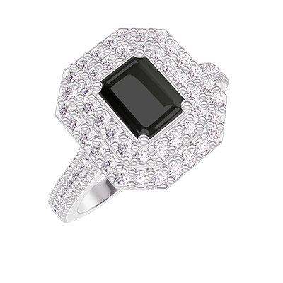 « L'ATELIER » NR. 421270Ring Witgoud 9 karaat - Zwarte diamant Rechthoekig 0.5 Karaat - Halo Diamant - Setting Diamant