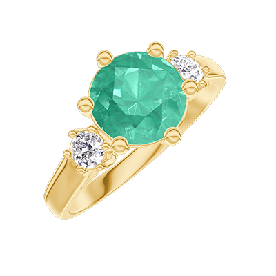« L'ATELIER » NR. 423279Ring Geelgoud 9 karaat - Smaragd rond 1 Karaat - Aanleunende edelstenen Diamant