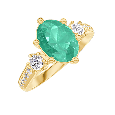 « L'ATELIER » NR. 423583Ring Geelgoud 9 karaat - Smaragd Ovaal 1 Karaat - Aanleunende edelstenen Diamant - Setting Diamant