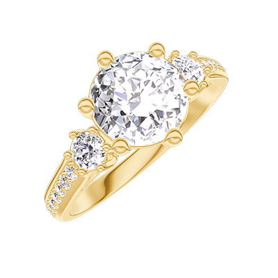 « L'ATELIER » NR. 425685Ring Geelgoud 9 karaat - Laboratorium diamant rond 1 Karaat - Aanleunende edelstenen Laboratorium diamant - Setting Laboratorium diamant