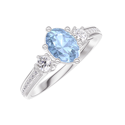 « L'ATELIER » NR. 444532Ring Witgoud 9 karaat - Blauwe topaas Ovaal 0.5 Karaat - Aanleunende edelstenen Diamant - Setting Diamant