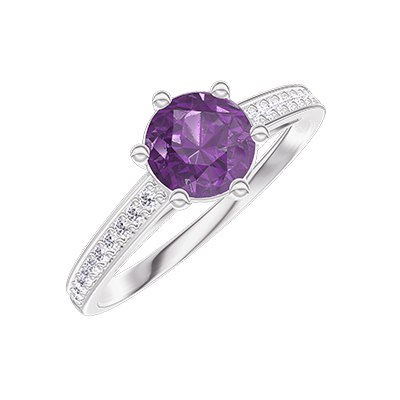 « L'ATELIER » NR. 448453Ring Witgoud 18 karaat - Amethist rond 0.5 Karaat - Setting Diamant