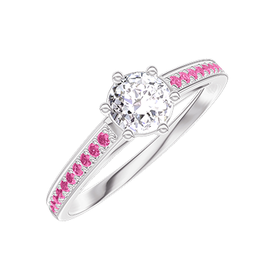 « L'ATELIER » NR. 495382Ring Witgoud 18 karaat - Laboratorium diamant rond 0.3 Karaat - Setting Rosé saffier