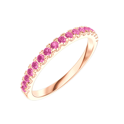 « L'ATELIER » NR. 800312Trouwringen Roségoud 9 karaat - Halve cirkel Microzetting Rosé saffier 0.25 Karaat
