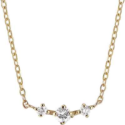 Een geelgouden ketting bezet met 3 diamanten - als een constellatie. Een vorm die zowel tijdloos als modern is.