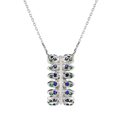 PANACHE NR. 8Halsketting - Witgoud 18 karaat - Synthetische smaragd, Synthetische saffier ID : 6340