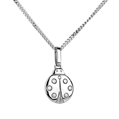 Een lieveheersbeestje in zacht witgoud om hem geluk te brengen. Zijn zevende punt is een diamant. Klein Model.